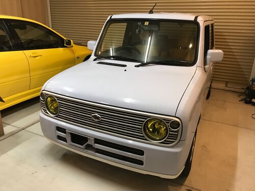 おはこんばんちは。 何だか最近軽ばっかり弄ってるゾンビでございます。 先月手元に来たラパンですが、早速ラジエターを交換しましたので記事にしてみたいと思います。 ラジエター交換の為に外したバンパーを仮置き…ラパンの骸を被ったミラ…みたいな?w どー…